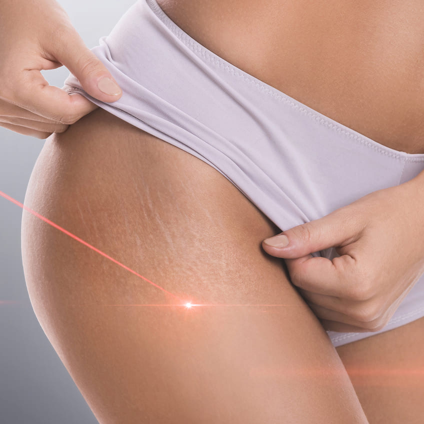 Láser fraccionado que repara la piel estriada mejorando su color textura y grosor.