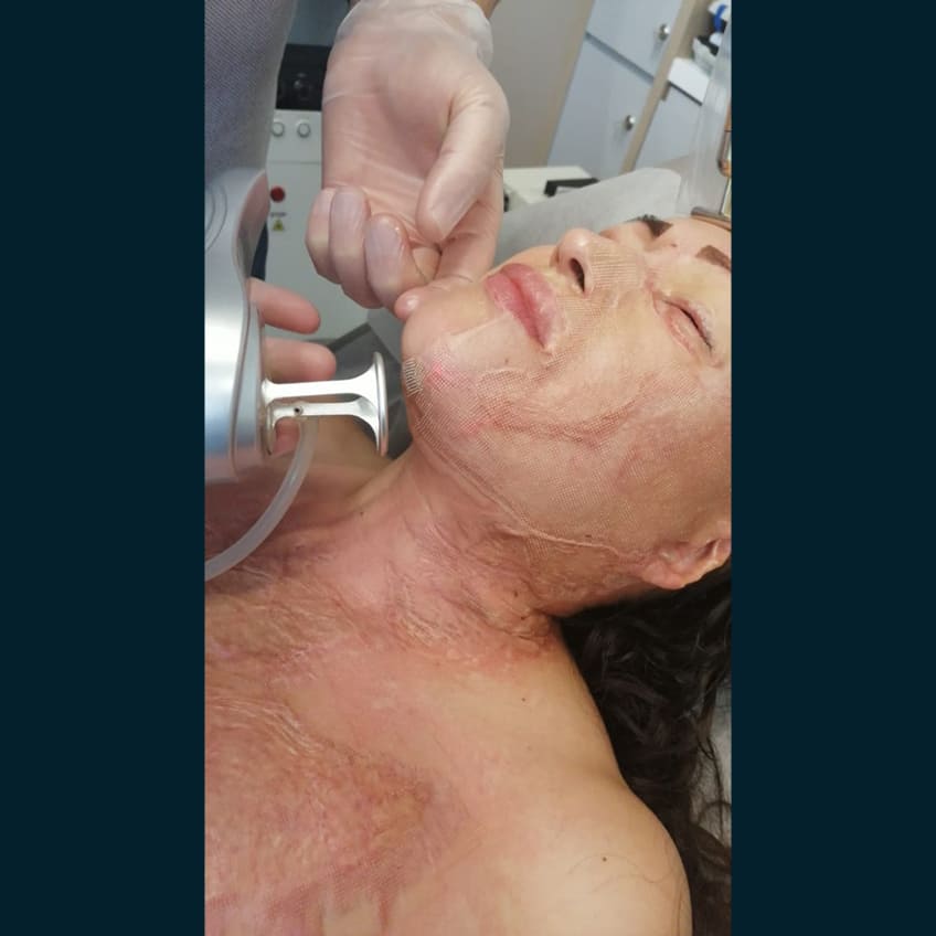 Mejora la textura rugosa y el color irregular de los injertos o zonas sanadas por segunda intención.